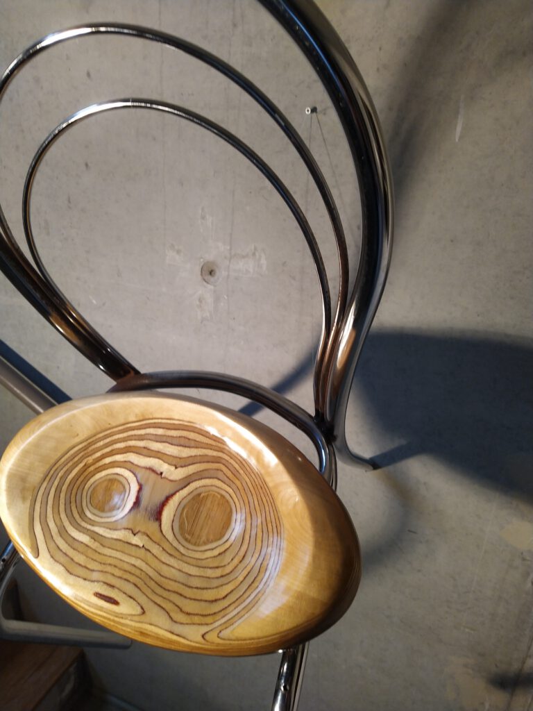 Sitzdrops Die Natur schaut zu. Wandskulptur, in symbiotischer Einheit der Elemente: Metall und Holz beim Schnitzen Stubilé Meta Morph